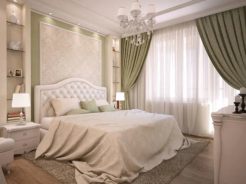 Комната отдыха будет смотреться естественно и благородно. Нежная спальня в пастельных тонах обладает еще несколькими достоинствами: