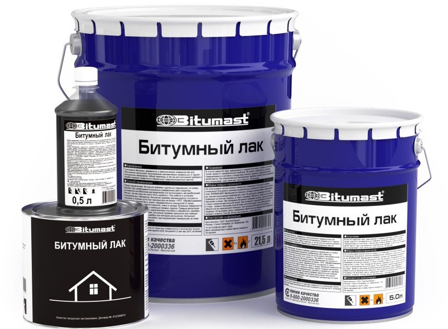 В продаже есть лак битумный от разных производителей. Однако все они схожи по некоторым свойствам. Подробнее о том, чем покрасить и чем растворить состав, будет рассказано далее.