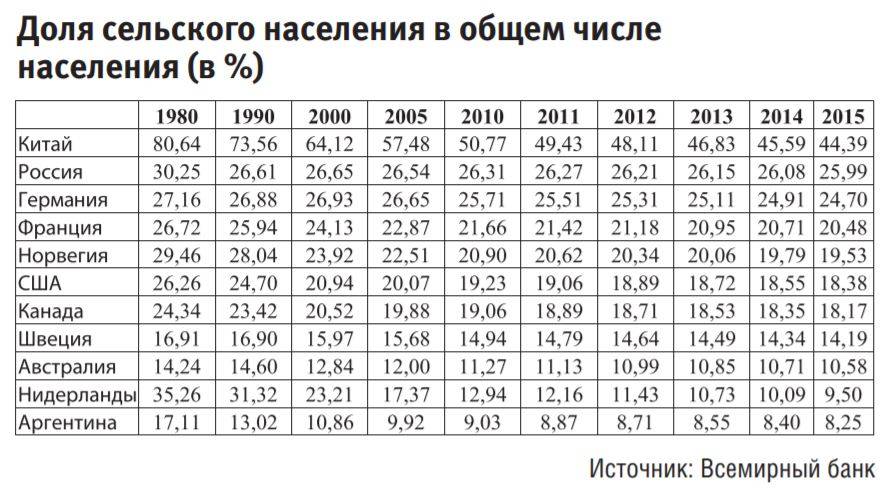 Благодаря автоматизации сельского хозяйства сейчас в АПК требуется в десятки раз меньше людей на производстве. Сегодня в развитых странах всего 2-5 % населения могут накормить всех граждан и ещё экспортировать продовольствие. Если в 1980-х один фермер мог кормить 50 человек, то теперь — уже около 200. В результате цифровизации этот показатель скоро вырастет до 255. Но это не значит, что сельскую местность надо полностью покидать — в Европе этого не происходит в таких масштабах, как в России, потому что люди находят другую работу у себя в поселениях и рядом и не хотят уезжать.
