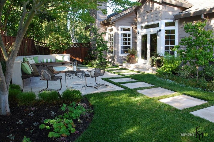 Каким бы крошечным ни был бы участок, дизайнеры рекомендуют оставлять место для газона, причем располагать его в «парадной» части сада, т.е. там, куда сразу падает взгляд. Этот принцип чем-то похож на советскую рекомендацию ставить мебель вдоль стен в маленьких квартирах. Хоть для жилых помещений этот принцип применяется все реже, для небольших участков он остается актуальным.