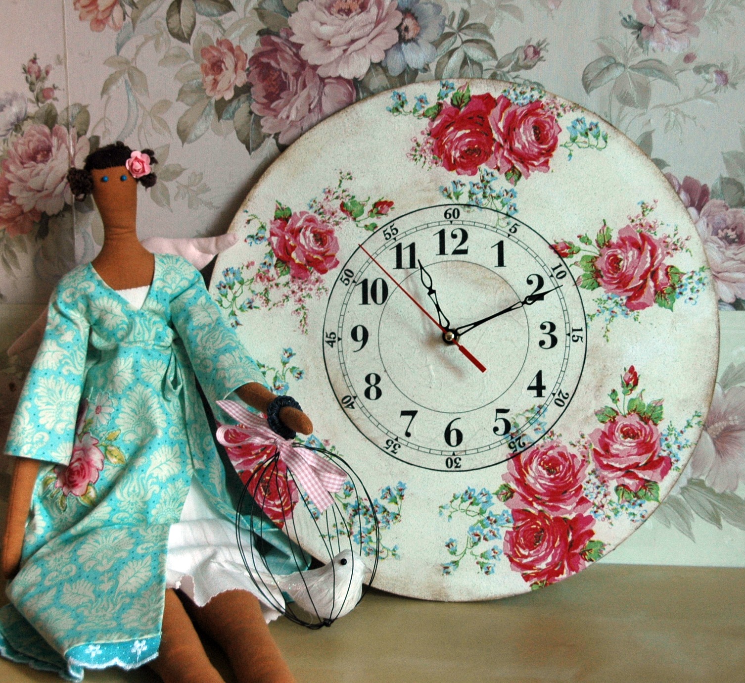 Для прованса или кантри можно выбрать настенные модели с кукушкой. Идеальный вариант это настоящие старые часы, доставшиеся от бабушки. Если удача не улыбнулась, можно искусственно состарить корпус с помощью шкурки или кракелюрного лака, дающего эффект потрескавшейся от времени краски.