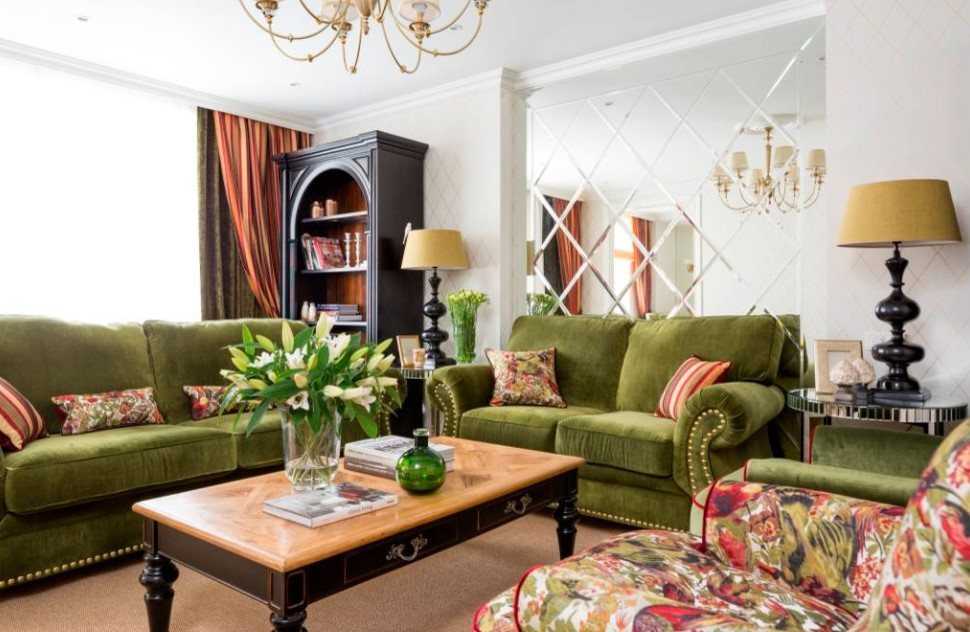 Классический стиль отличается крупным зеркалами в габаритных деревянных рамах. Приветствуется резьба на деревянных элементах. Можно поискать антикварную модель, если она будет уместна в интерьере гостиной.