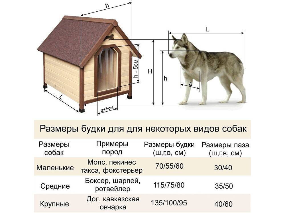 Будку необходимо строить для конкретной собаки. Или наоборот, подбирать животное с учетом габаритов имеющейся будки. Вариант, когда делается будка больших размеров, способная гарантированно вместить крупного пса, а в нее селится такса, столь же неприемлем, как и маленькая будка для большого пса.