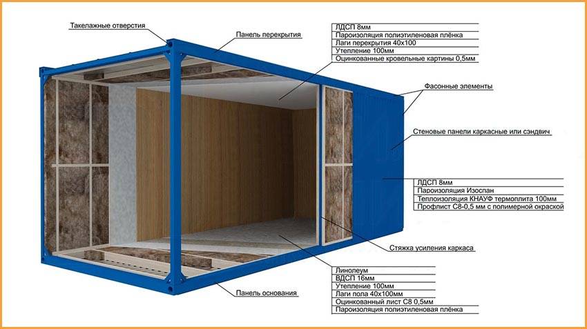 Внутри металлической бытовки подшивают дополнительный потолок для утепления поверхности, предохранения от шума.