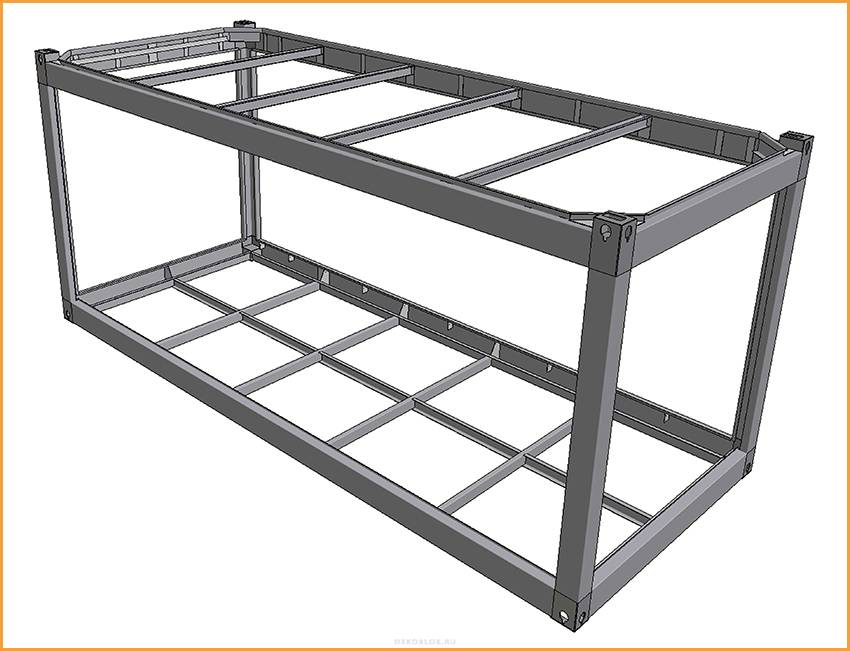 - ставят стойки в виде опор по углам бытовки (сечение 40 х 40) и на линии стен с определенным шагом (обычно — 1 метр);