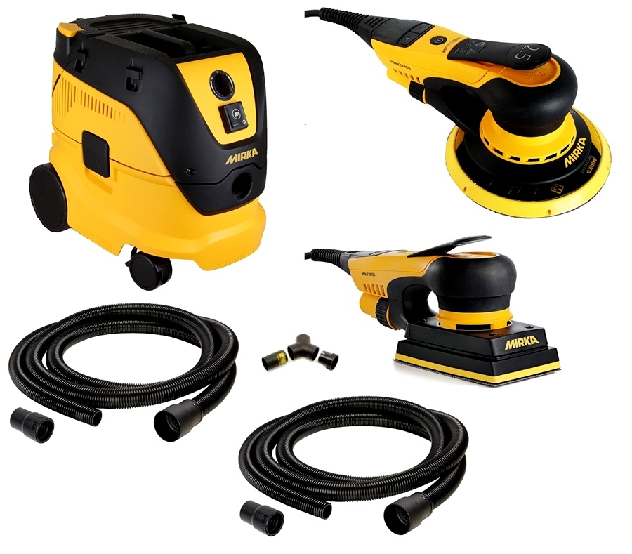 Некоторые производители стали применять метод для ручных терок. На корпусе инструментов имеется патрубок для подключения шланга от пылесоса, на подошве – отверстия. Терки работают только с сеткой, оставляющей глубокие борозды.