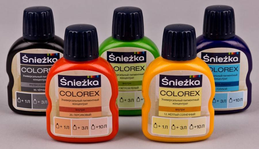 Подбирая подходящий цветовой концентрат, нужно учитывать, какой состав водоэмульсионной суспензии будет подвергаться колеровке. По составу красители могут быть: