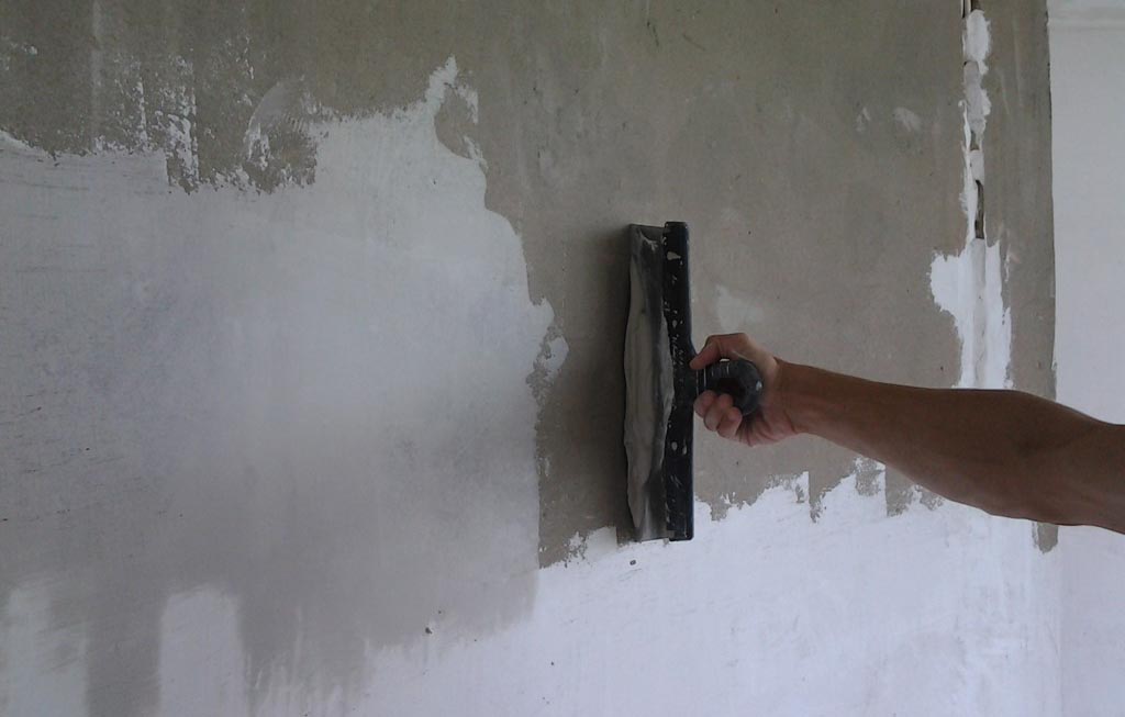 Теперь простукивайте всю стену для обнаружения пустот. Если отошел слой штукатурки, то очищаем стену от него и наносим слой шпаклевки, чтобы выровнять поверхность.