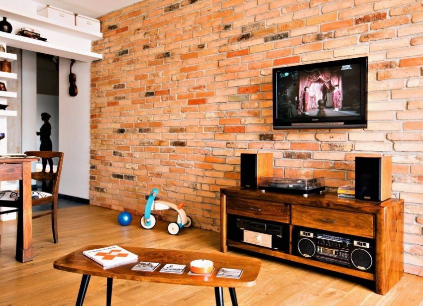 Если в помещении есть камин или печь, тогда стоит позаботиться о соответствующей отделке пространства вокруг него. Дизайнеры не рекомендуют полностью покрывать стены имитацией кирпича для внутренней отделки, лучше сделать это вокруг очага или на небольшом участке.