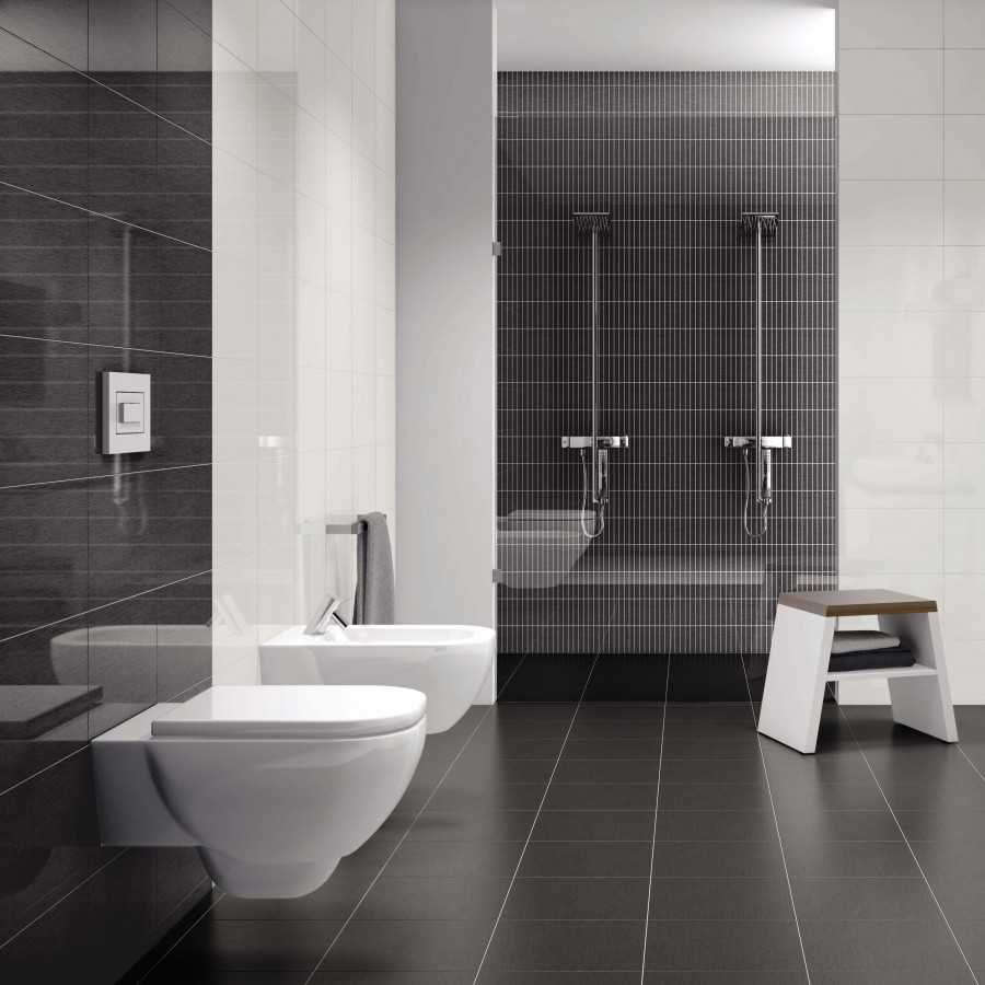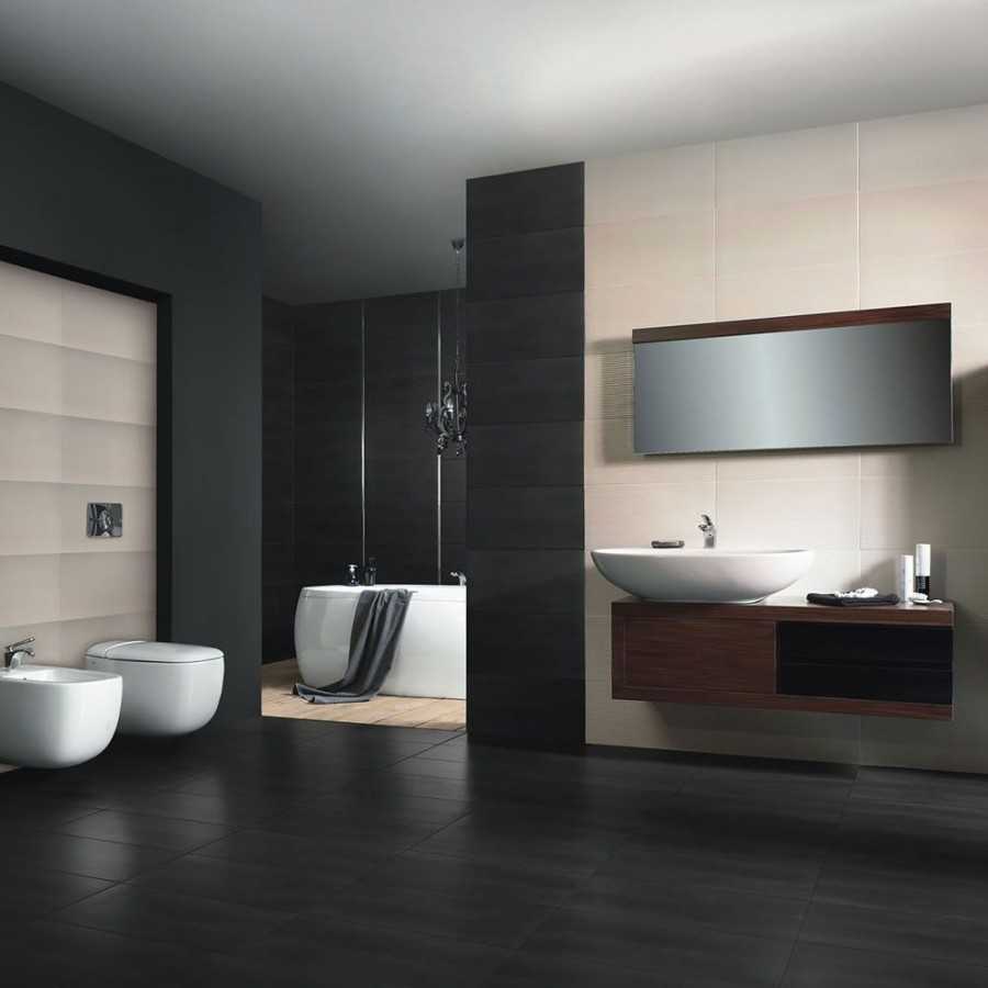 Как правильно применять черные тона плитки для ванной?