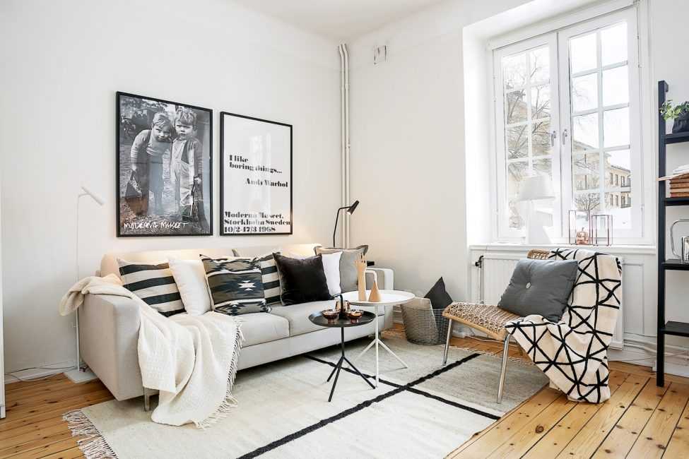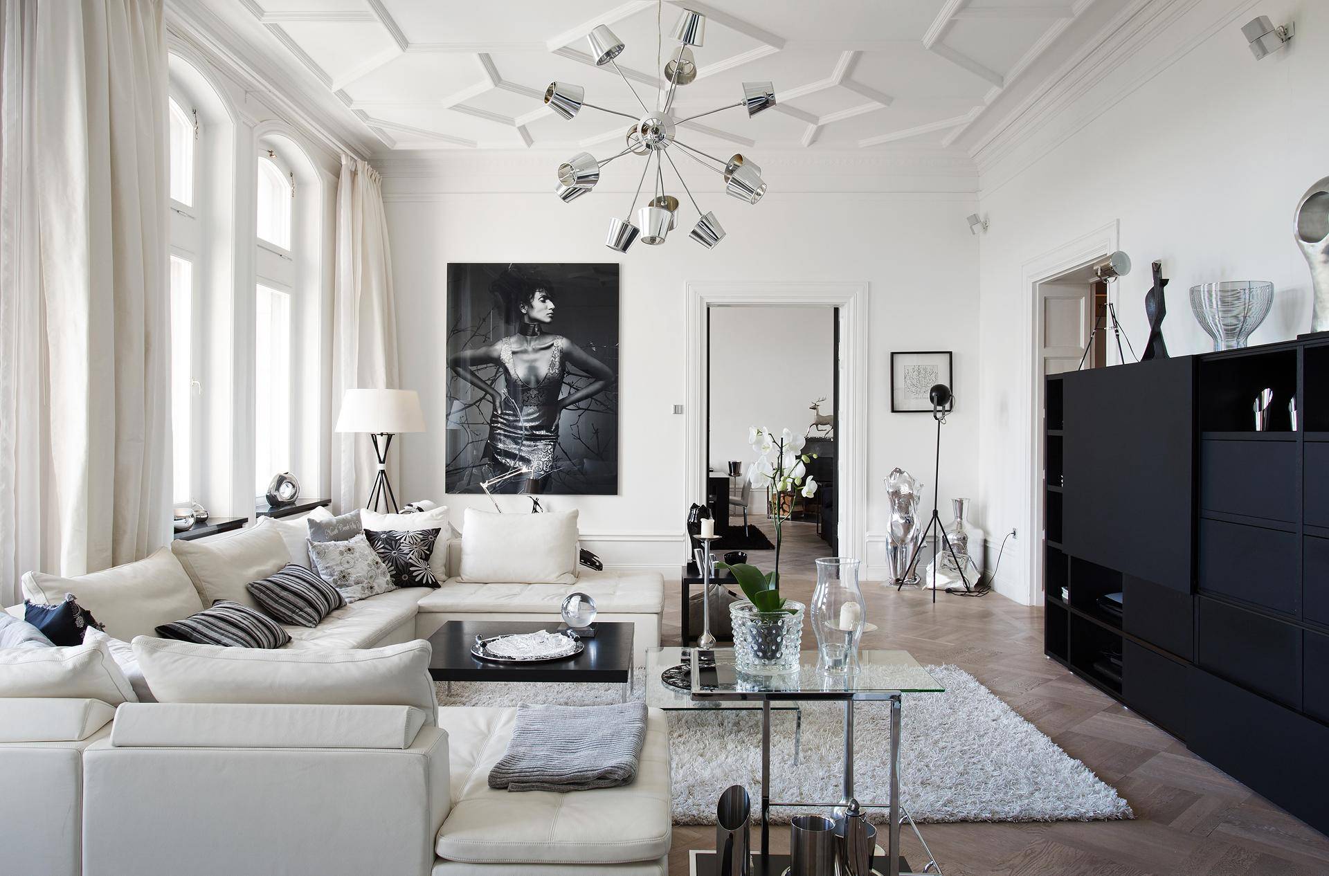 Черно-белый декор подходит для этого декоративного стиля! Независимо от темы оформления вашей гостиной, он сделает его более актуальным. В то время как черный подчеркивает различные архитектурные элементы в комнате, белый дает ему глоток свежего воздуха, делает более просторным.