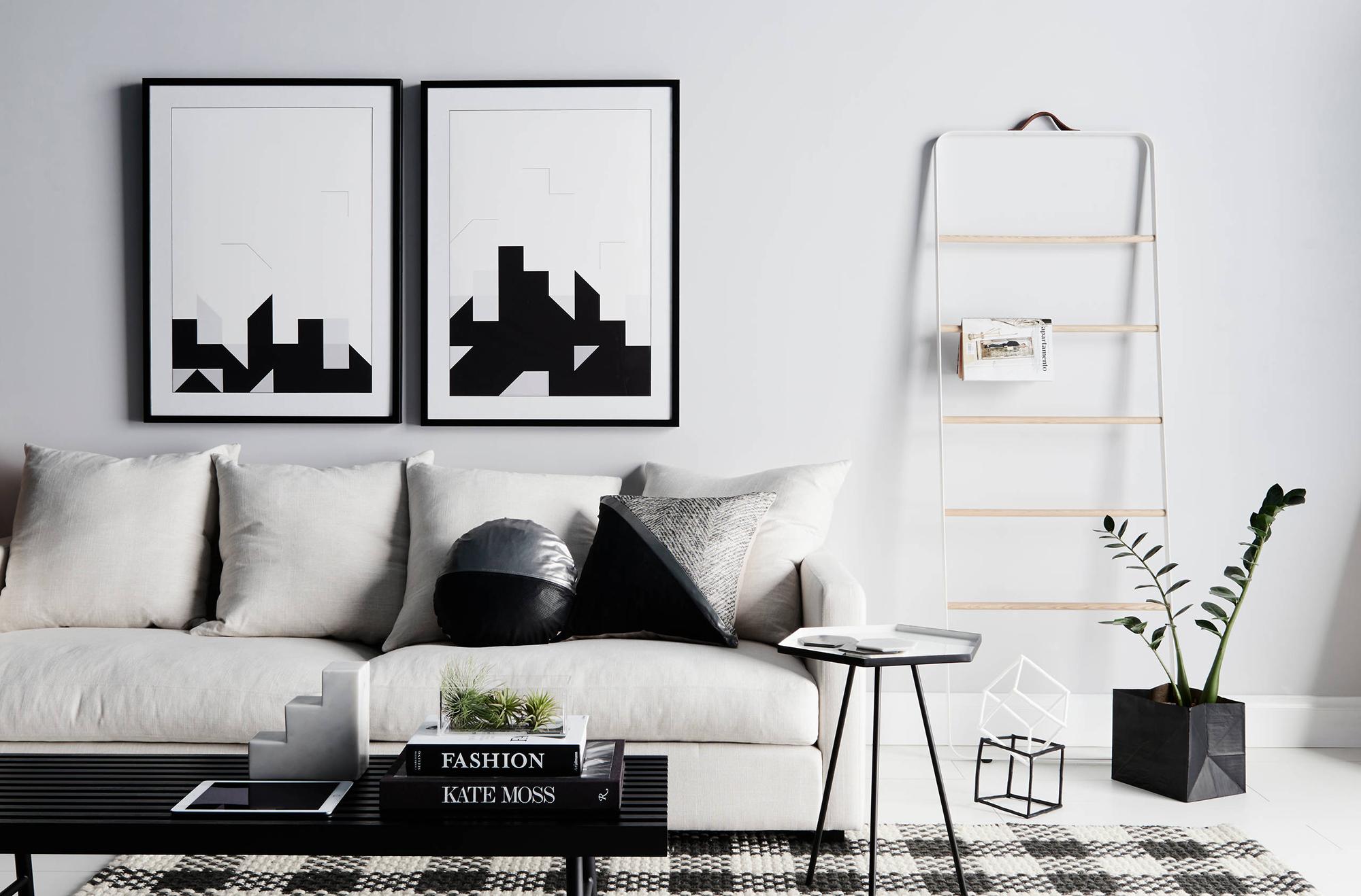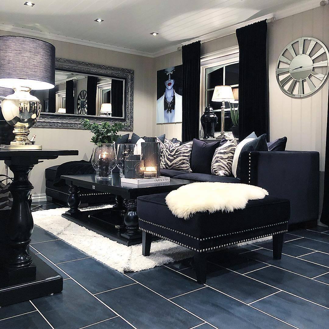 Уютная черно-белая гостиная