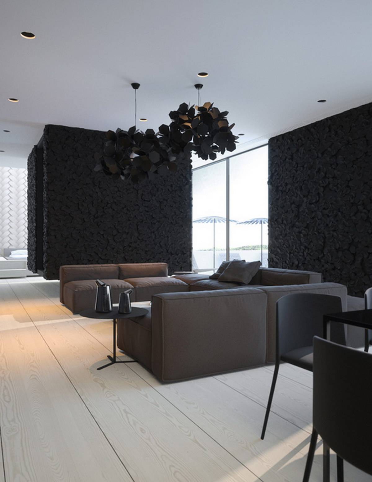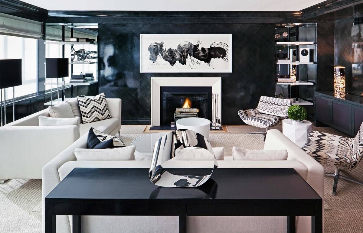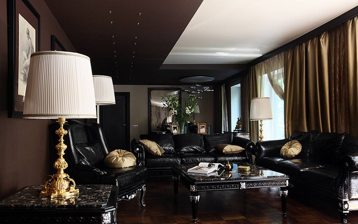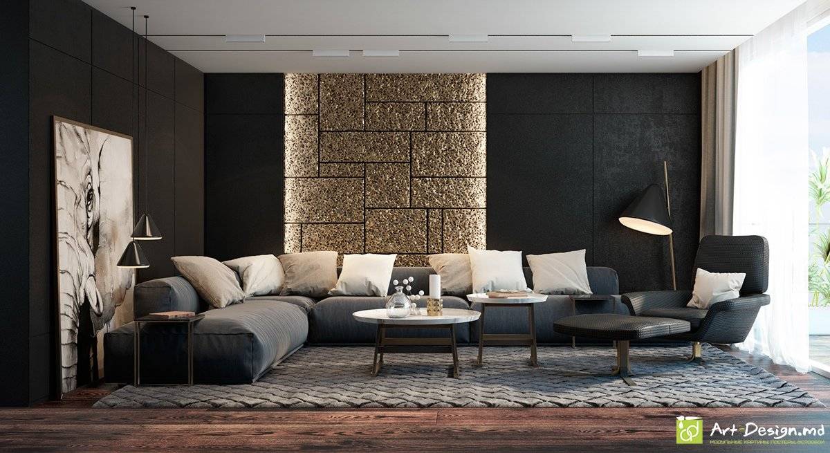Интерьер гостиной в чёрном цвете