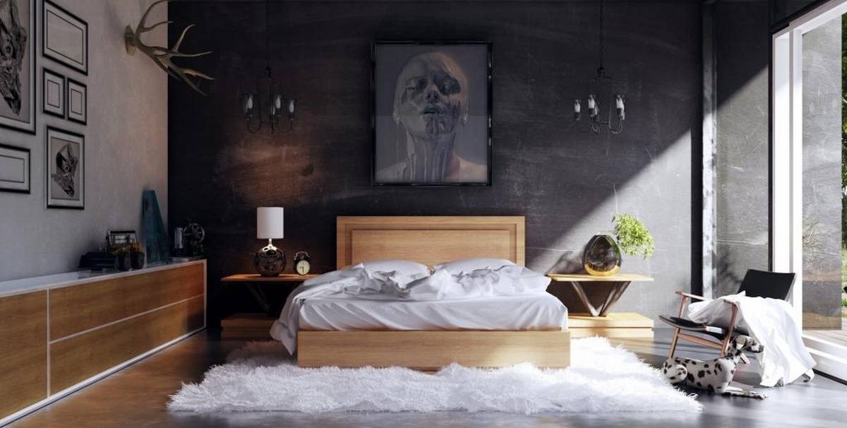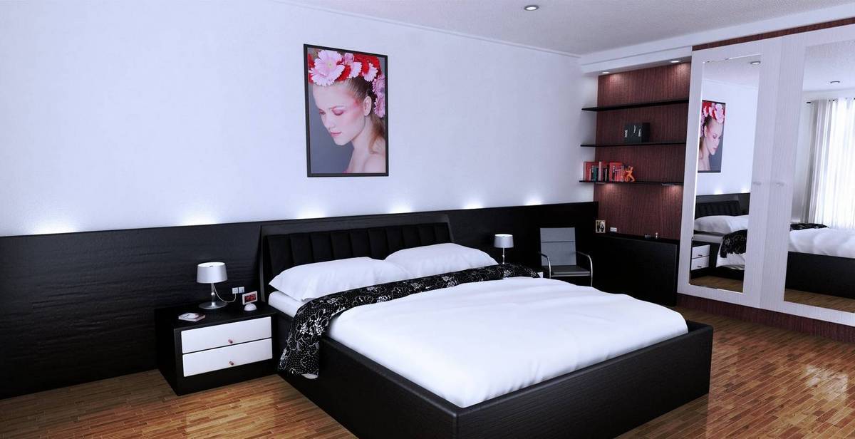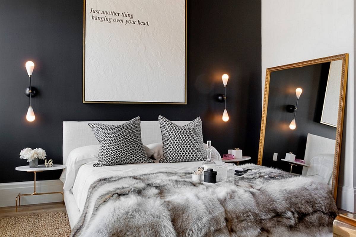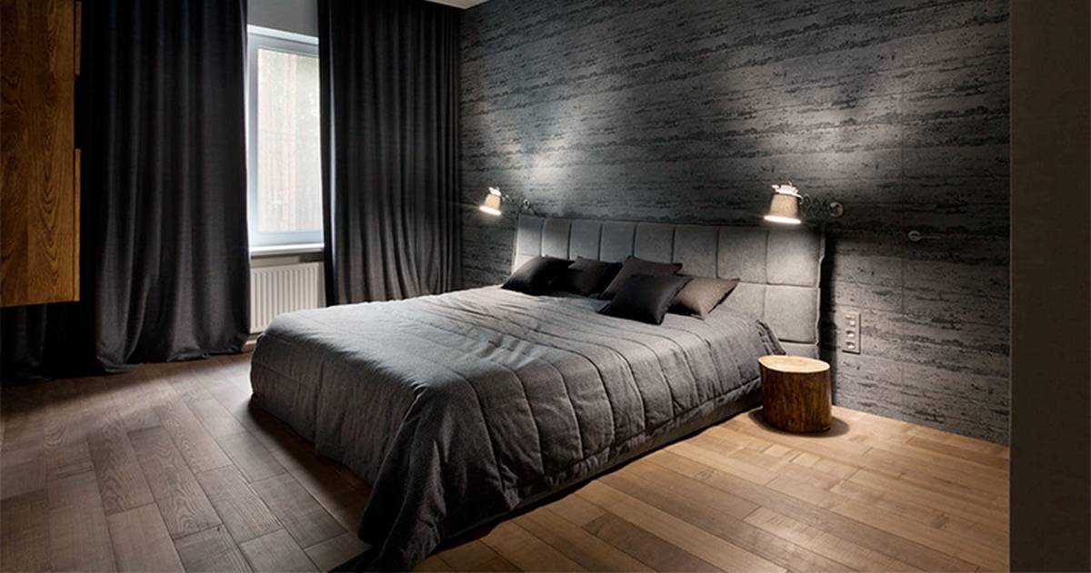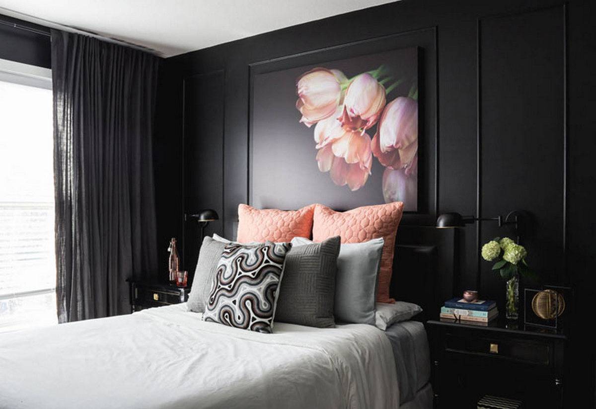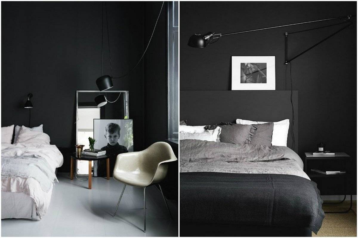 Чёрный цвет в интерьере спальни