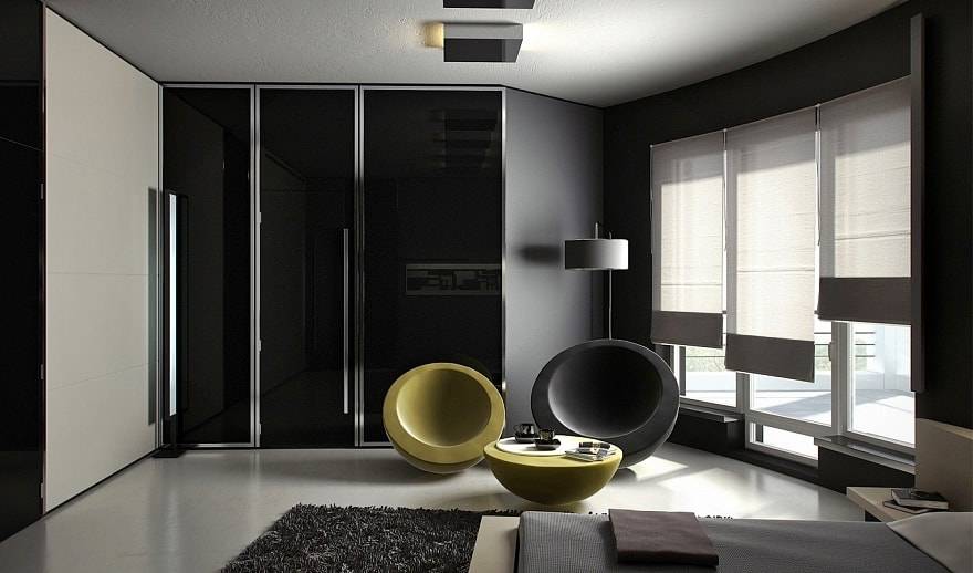 Чёрный цвет в интерьере спальни