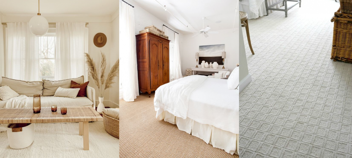 Если вы остановились на натуральной цветовой гамме в нейтральных светлых оттенках, интерьер может «заскучать». Предотвратить это можно, добавив фактурности, с чем отлично справятся напольные ковровые покрытия в натуральных расцветках.