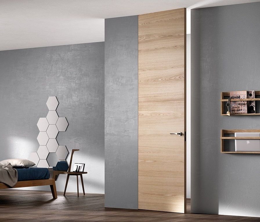 Обычно в квартирах с большой площадью или в частных домах в комнате находятся несколько дверей, их количество может нарушить гармонию интерьер. Исправить ситуацию можно с помощью ламинированных дверей под цвет обоев или выполнить монтаж раздвижных дверей в однотонном стиле.