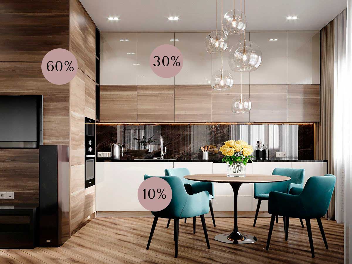 Выбирая, с каким цветом сочетать кухню, нужно экспериментировать, выражая внутреннее состояния ее пользователей с помощью смешивания разных оттенков. Добавляя плавные акценты, создавайте необходимое ощущение спокойствия и умиротворенности