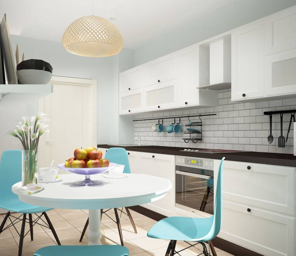 Белый цвет придаст свежести и легкости. Он будет хорошо гармонировать со светло-серым гарнитуром. Серо-белая кухня всегда будет актуальна и ее можно вписать в любой стиль.