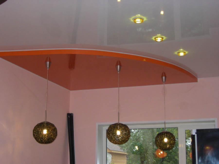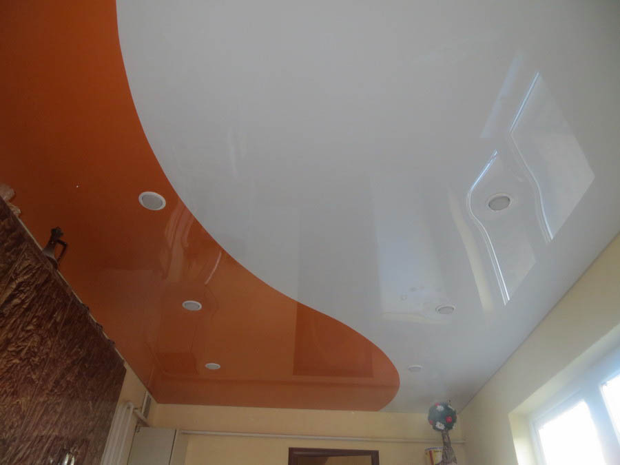 Чаще всего при отделке используются первые два способа. Во многом, из-за их относительно высокой скорости выполнения, а также адаптации для помещений с невысокими потолками. Если же вы хотите соорудить двухцветный натяжной потолок путем последовательного монтажа нескольких уровней, то тщательно соотнесите ваше желание с высотой помещения: такая конструкция отнимает очень много сантиметров от уровня бетонного основания потолка, и вместо приятного результата рискуете получить очень сильный компрессионный эффект.