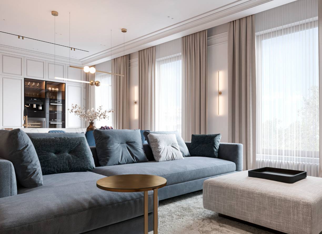 Светлая мебель — в приоритете. Универсальный белый цвет можно сочетать с любым другим. Очень красивый фасад в сочетании с 2-3 естественными оттенками.