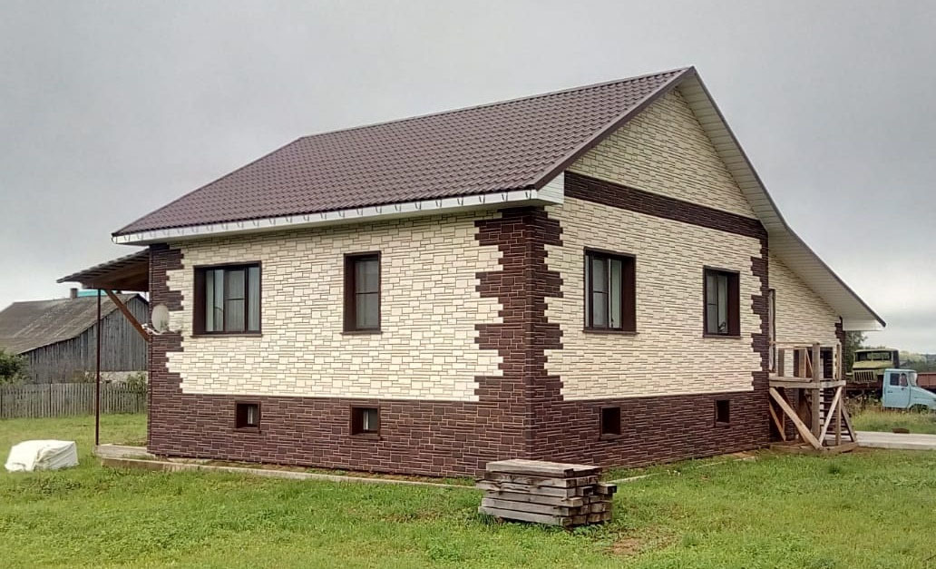 Владельцы дома имеют возможность выбрать материал подходящего дизайна. В продаже есть материал, имитирующий: