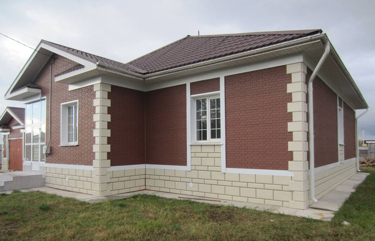Классическое сочетание: темный цоколь и светлые стены. Цвет цоколя можно (но не обязательно) подбирать под кровлю и усилить угловыми элементами, отделкой оконных и дверных проемов.