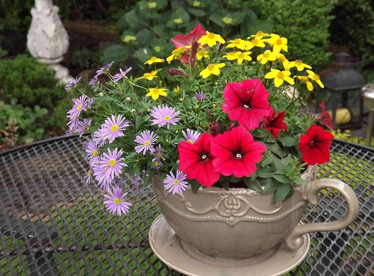 Нарядный цветущий зонтик. Оригинальные клумбы из знакомых предметов