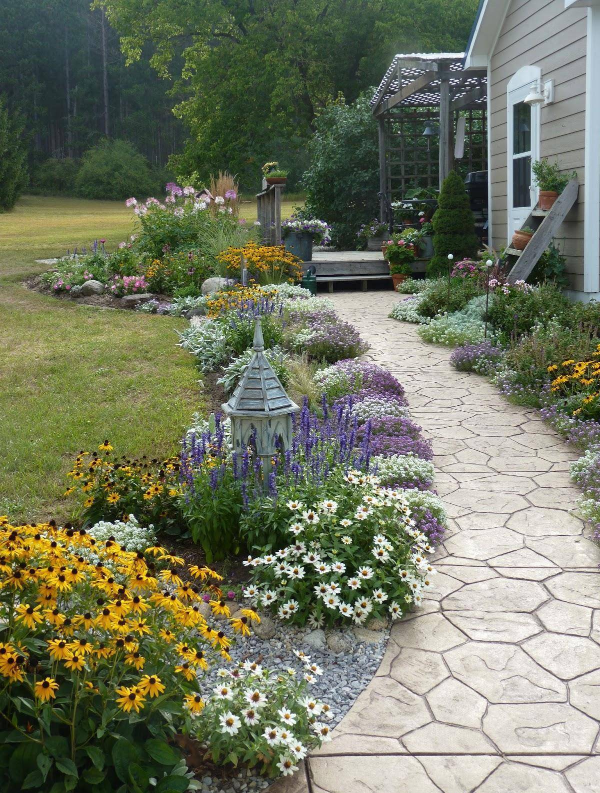 Миксбордеры. Композиции из разных цветов. Как правило, их размещают вдоль дома, мощеной дорожки или ограждения.