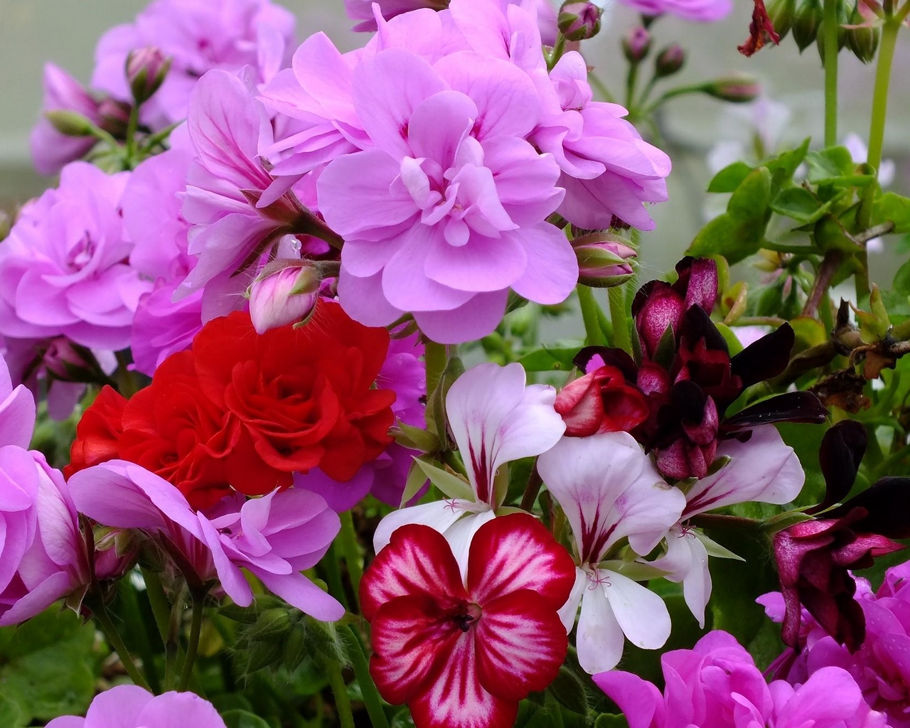 - Герань. Цветет с середины лета до осени. Образует кустики пышных форм.