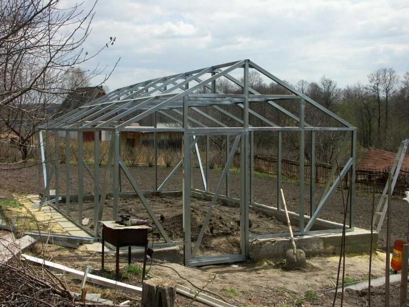 Важным показателем качества для теплицы является ее каркас. Он должен быть жестким, способным выдержать любые нагрузки. В качестве материала для каркаса выбирайте оцинкованный металлический профиль квадратного или прямоугольного сечения. П-образные будут иметь недостаточную жесткость, теплица из них прослужит недолго.