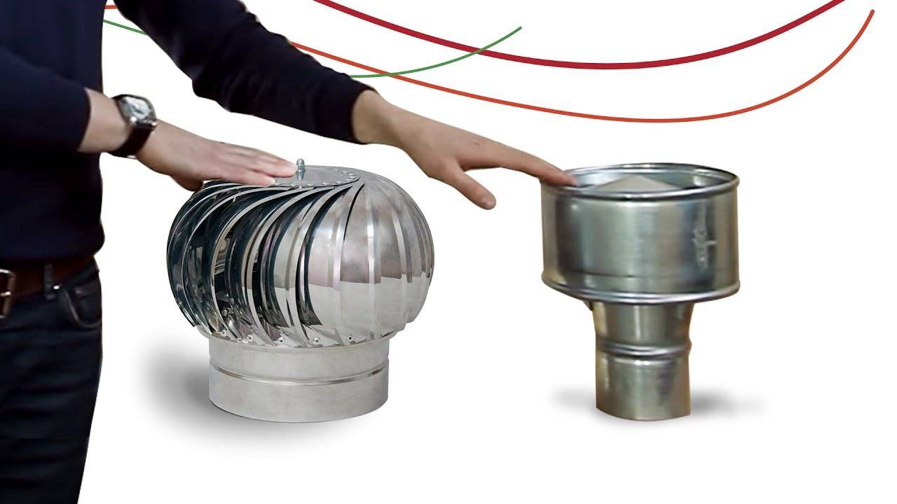 Важно! Внешняя форма дефлектора подбирается не из дизайнерских соображений. Форма цилиндра продиктована сложными аэродинамическими расчетами и рядом испытаний