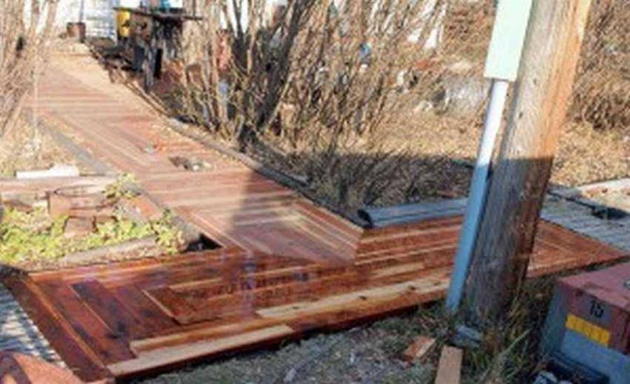Если вам по душе вариант «дешево и сердито», сделайте дорожки на даче из паллет – деревянных поддонов. Обычно поддоны можно найти в больших количествах на строительной площадке или на складах. Их используют для временного хранения строительных материалов.