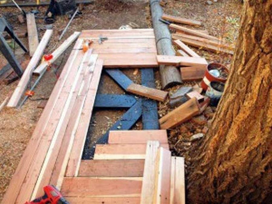 - Древесина — самый доступный стройматериал в плане стоимости, помимо этого, на даче можно найти спиленные стволы, старые доски, обрезки от прошлых строительных работ.