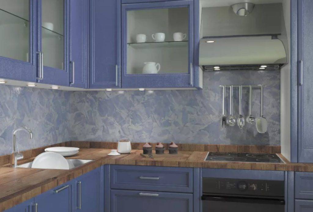 Встречаются варианты, имитирующие мрамор и оникс. Нанесение осуществляется слоями.