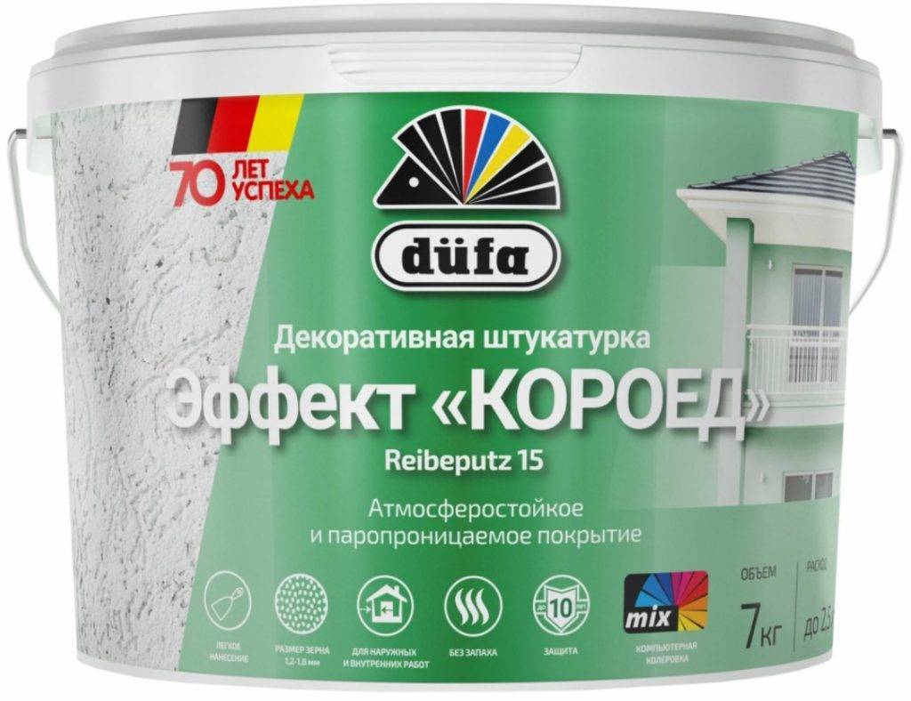 Акриловая штукатурка изготовлена из прочного материала, на основе акриловых смол. При правильном нанесении, срок эксплуатации составляет более 15 лет.