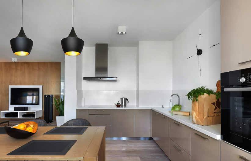 - Гладкое покрытие подойдет для разных интерьеров. Яркий кухонный гарнитур и текстиль уравновесят гладкие стены в спокойной цветовой гамме. А минималистичный интерьер с мебелью в стиле хай-тек разбавят стены сочных цветов.