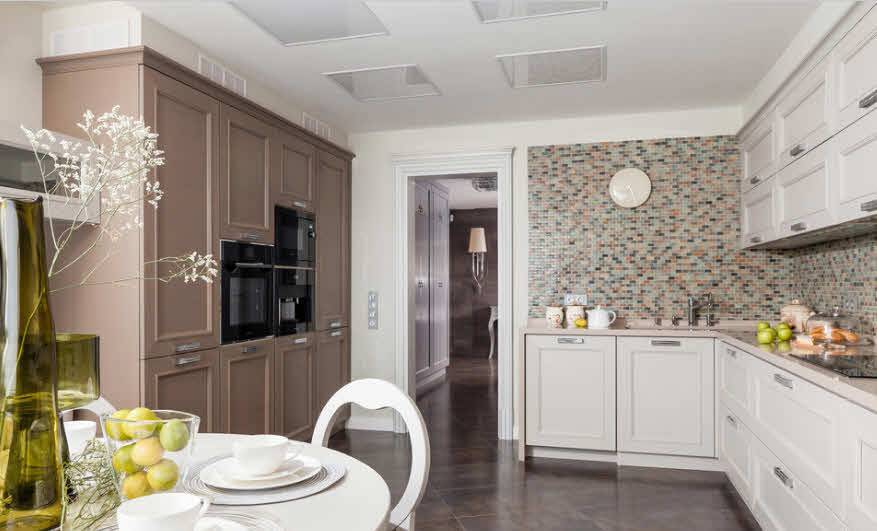 Для кухонь в классическом стиле, итальянском или даже лаконичном хай-тек часто подбирают покрытия, имитирующие мрамор, гранитную крошку или холодный природный камень. Очень хорошо впишется шелковая штукатурка в интерьер бохо-шик, прованс и любого другого неоклассического стилевого направления.