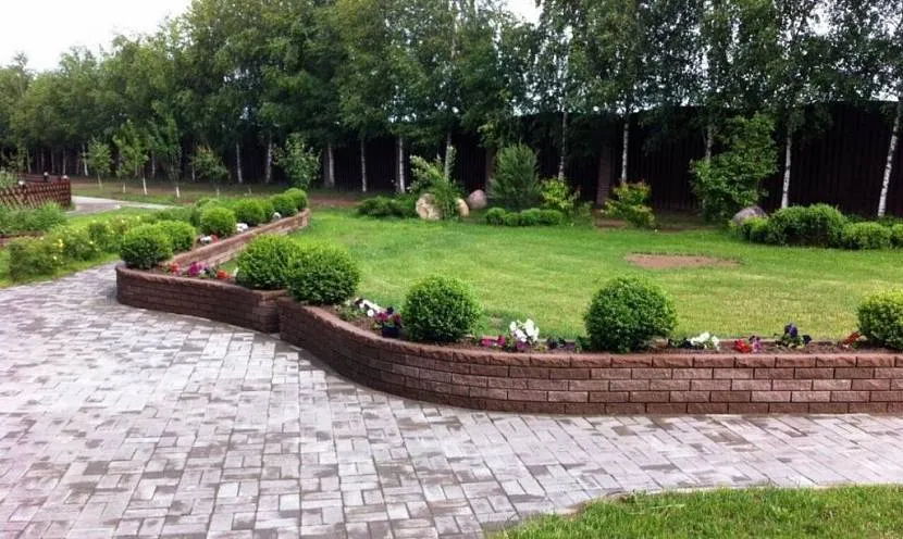 На заметку!Базу для живого бордюра делают из того же стройматериала, что и коттедж или постройки рядом.