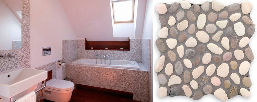 Также применяют декоративный камень и для ванных комнат. Но в этом случае необходимо выбирать такой вариант, который формирует максимально гладкую поверхность.