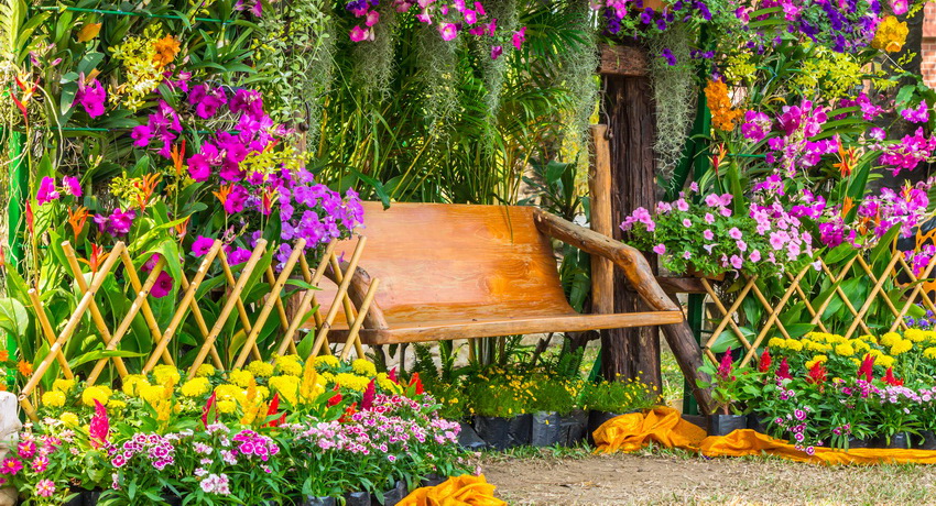 Нарядный забор вокруг клумбы привлекает внимание к цветочной композиции. Декорирование