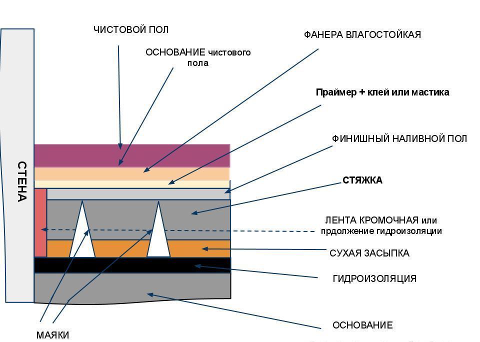Схема подготовки деревянного пола перед укладкой плитки, часть 1