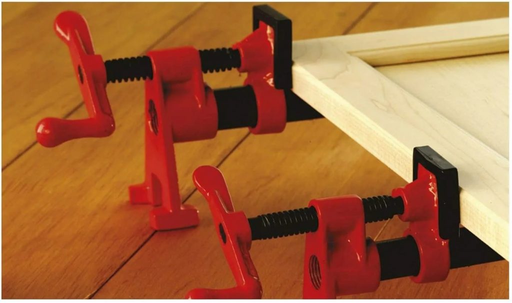 - Собранное полотно сжать струбцинами и оставить высыхать.