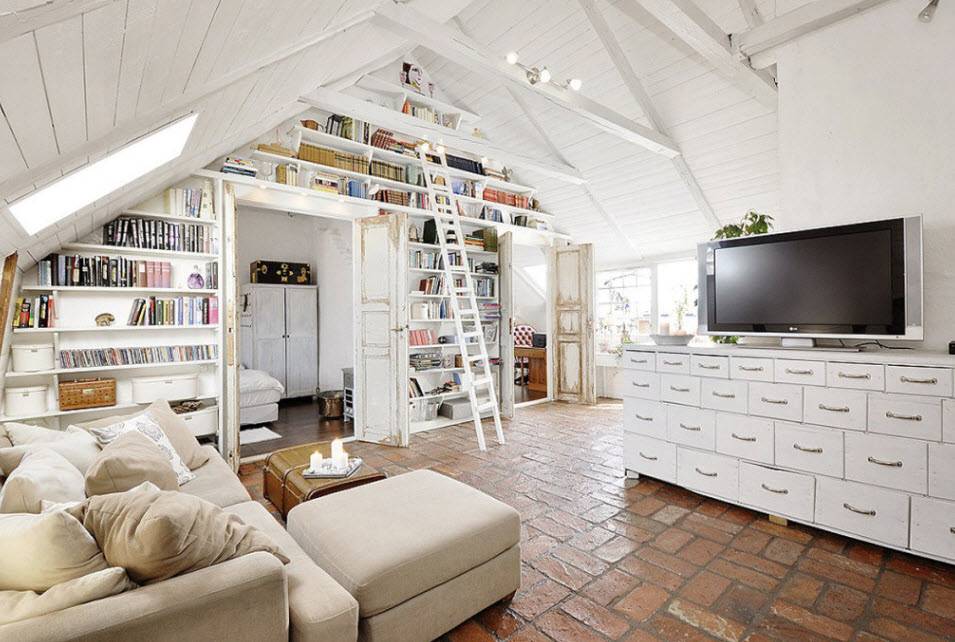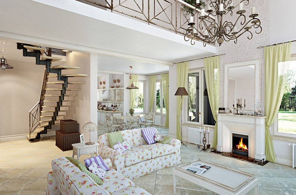 Особой колоритностью наполнят дизайн лестничные перила, декорированные при помощи резьбы или позолоты. Для увеличения полезной площади в домах с мансардой, чердачное помещение часто оборудуют под жилую комнату.