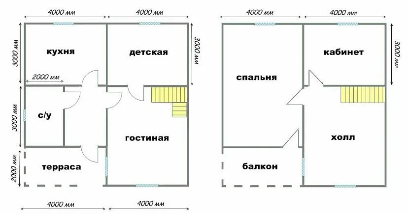 При планировании двухэтажного дома с такой площадью есть один существенный недостаток. Места для лестницы на второй этаж или мансарду остается очень мало. Как итог – она будет очень крутой, что значительно затруднит по ней подъем пожилых людей и детей.