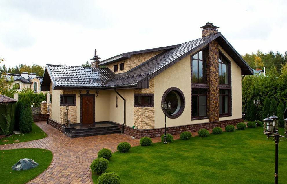 Для облицовки дома используют натуральное дерево (деревянные панели, цельные брёвна, сруб), или обрабатывают фасады декоративным камнем. Русский деревенский стиль незамысловат, но не лишён привлекательности.