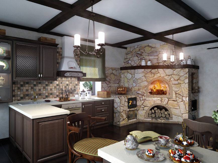 В русском стиле деревенского направления основной закон стилистического характера утверждает «практичность взамен излишеств», но это не означает, что про красоту и дополнительные украшения забывают.