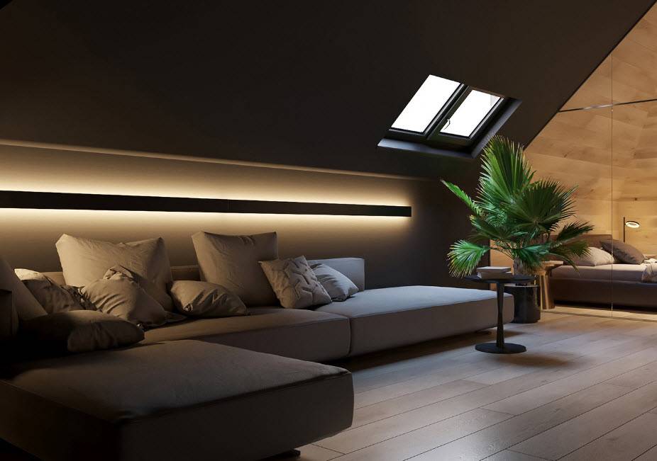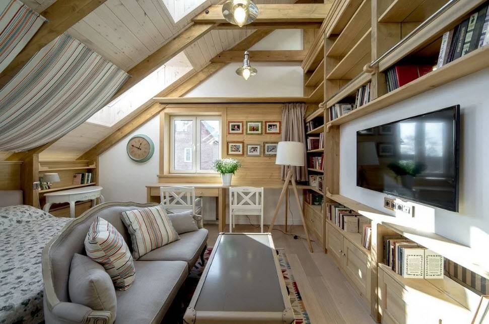 - В мансарде может располагаться спальня, рабочий кабинет, зона отдыха или детская комната.
