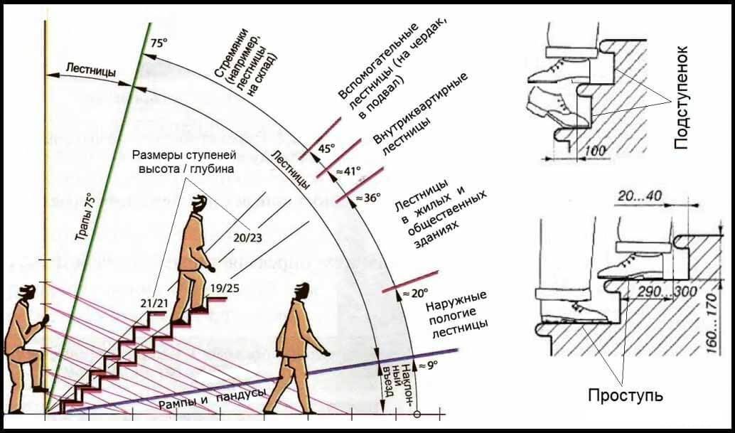 При увеличении угла наклона лестницы будет сокращаться глубина проступи.
