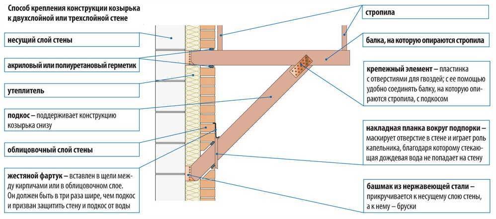 Как крепить козырек над входной дверью к трех или двухслойной стен